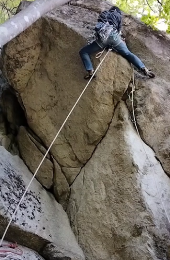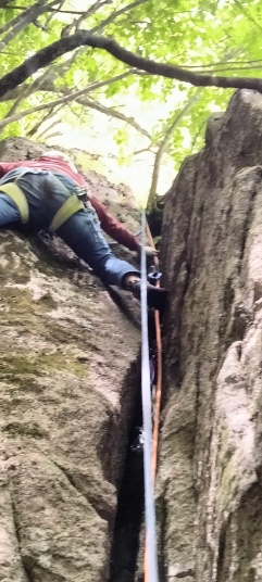 右のロープはクラックの掃除と